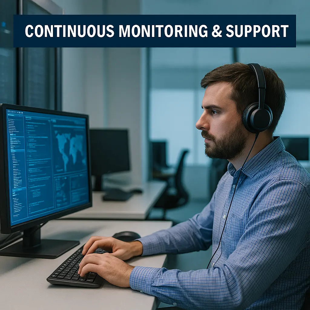 Our commitment to securing your business extends beyond implementation. We will consistently monitor your systems to detect and address any potential security threats.